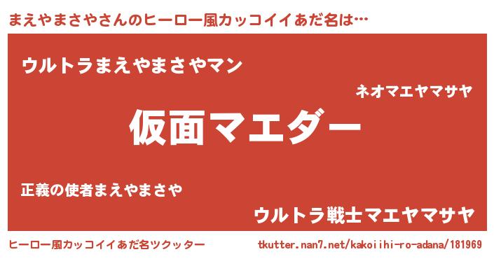 | 意味不明あだ名 | 『住所不定無職まえやまさや(95歳)』 |