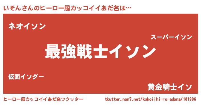 | 意味不明あだ名 | 『自称いそん』『永久保存いそん』 |