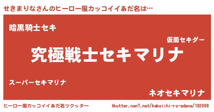 | 男性向けラノベタイトル風あだ名 | 『Re:せきまりなから始める異世界生活』 |