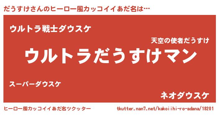 | 男性向けラノベタイトル風あだ名 | 『だうすけ~年齢イコール彼女いない歴の魔法使い~』 |