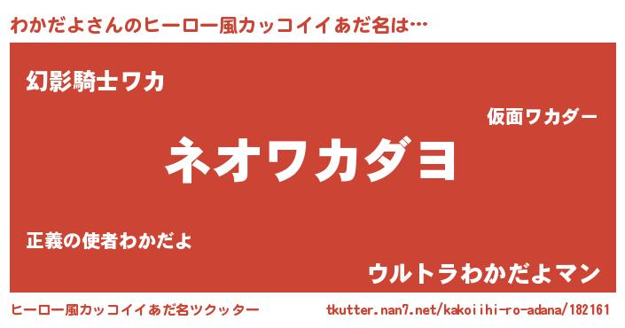 | 男性向けラノベタイトル風あだ名 | 『ワカダヨスレイヤー』 |
