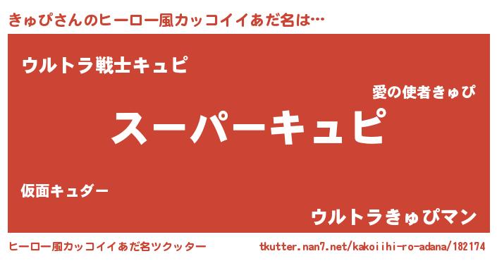 | 男性向けラノベタイトル風あだ名 | 『きゅぴの憂鬱』『魔法科高校のきゅぴ』 |