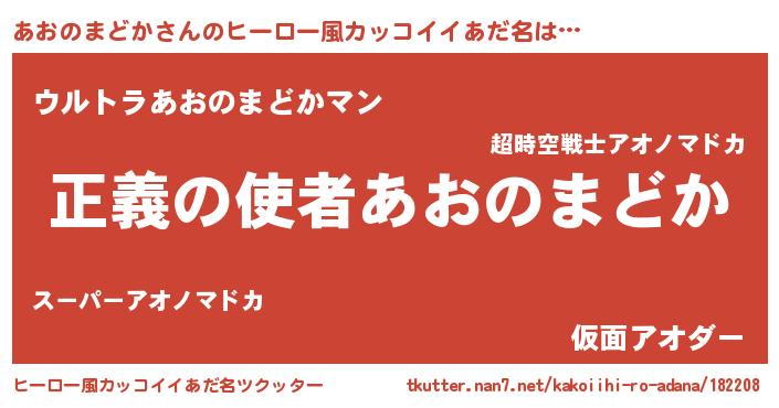 | 男性向けラノベタイトル風あだ名 | 『アオノマドカスレイヤー』 |