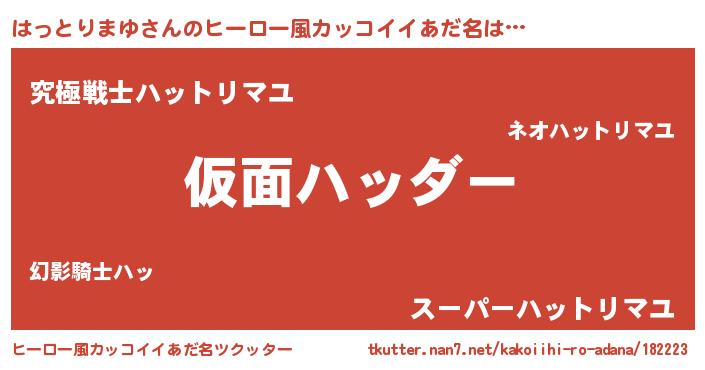 | 意味不明あだ名 | 『住所不定無職はっとりまゆ(89歳)』 |