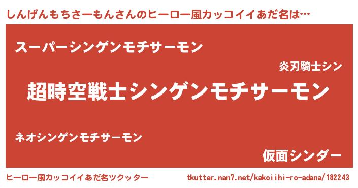 | 料理風あだ名 | 『しんげんもちさーもんごはん』 |
