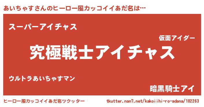| 男性向けラノベタイトル風あだ名 | 『あいちゃすに滅ぼされるだけの簡単なお仕事です』 |