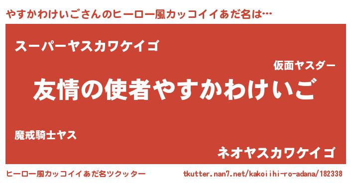| 男性向けラノベタイトル風あだ名 | 『おまえをオタクにしてやるから、俺をやすかわけいごにしてくれ! 』 |