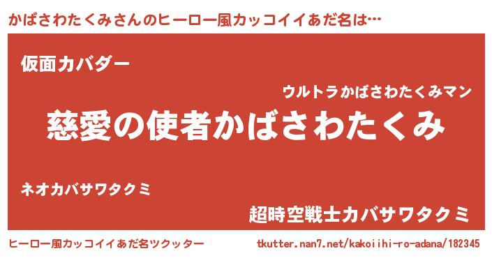 | 男性向けラノベタイトル風あだ名 | 『ノーゲーム・ノーカバサワタクミ』 |