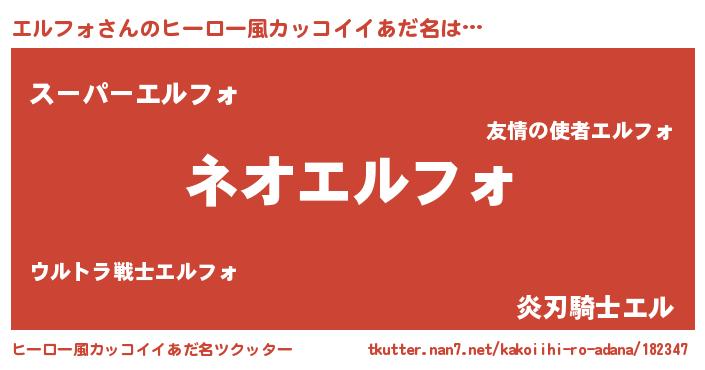 エルフォさんのヒーロー風カッコイイあだ名をツクッター!