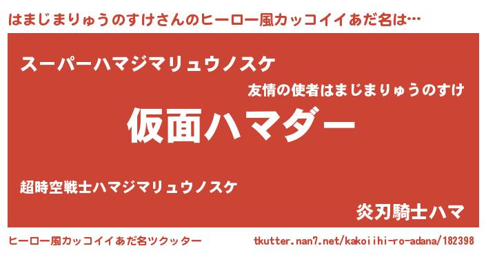 | 意味不明あだ名 | 『住所不定無職はまじまりゅうのすけ(68歳)』 |
