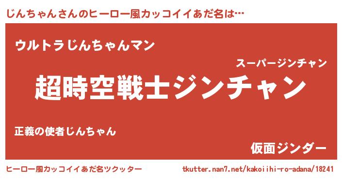 | 男性向けラノベタイトル風あだ名 | 『魔法科高校のじんちゃん』 |