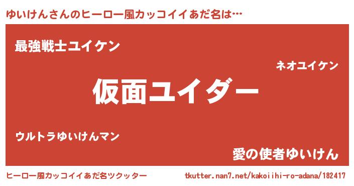 | 意味不明あだ名 | 『住所不定無職ゆいけん(1歳)』 |