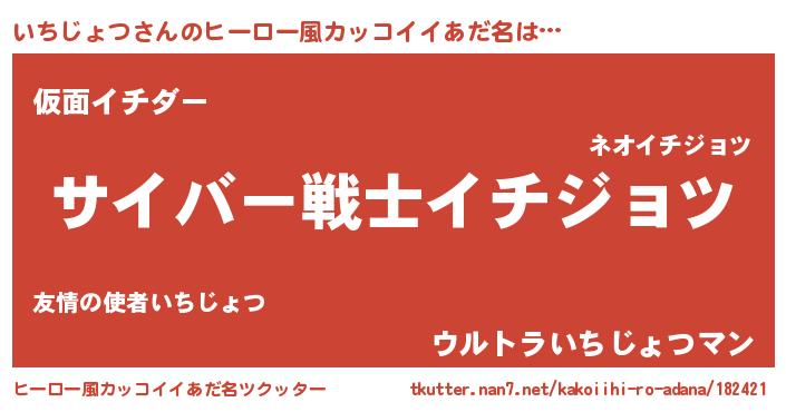 | 恥ずかしいあだ名 | 『イチジョツデラックス』『いちっちょ』 |