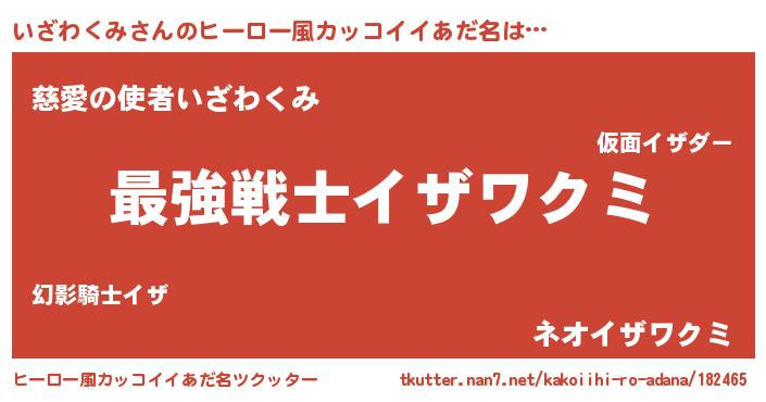 | 男性向けラノベタイトル風あだ名 | 『Re:いざわくみから始める異世界生活』 |