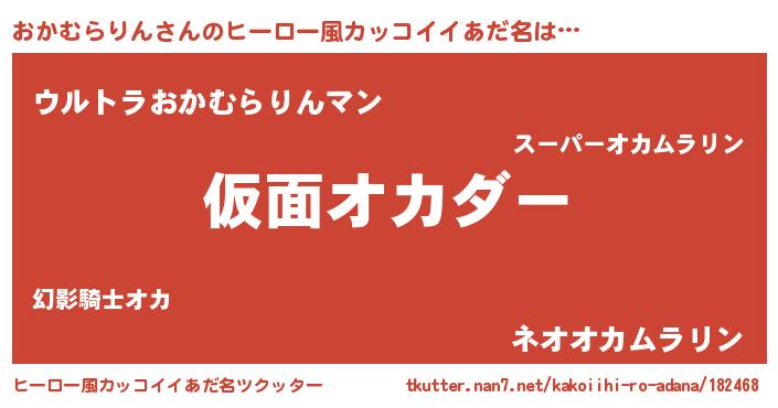 | 男性向けラノベタイトル風あだ名 | 『この素晴らしい世界におかむらりんを!』 |