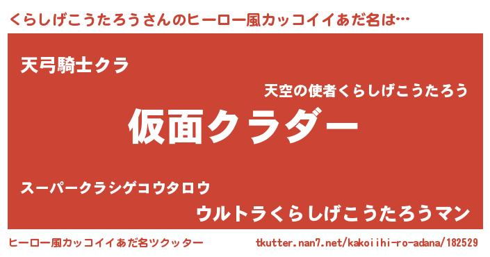 | 意味不明あだ名 | 『住所不定無職くらしげこうたろう(11歳)』 |