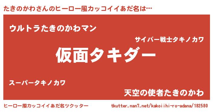 | 男性向けラノベタイトル風あだ名 | 『うちのたきのかわが世界を掌握している!』 |