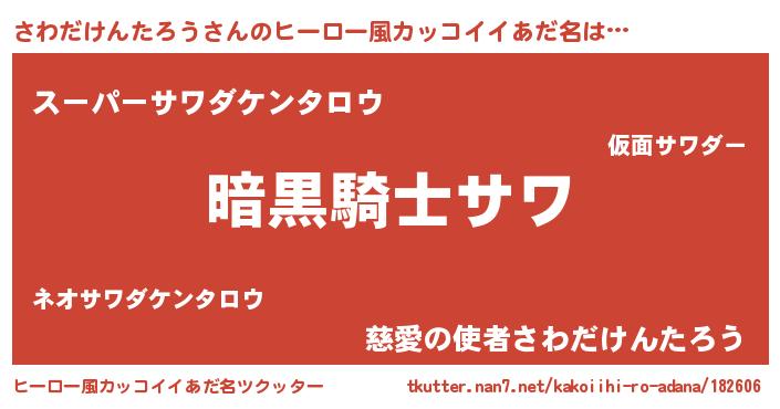 | ポケモン風あだ名 | 『サワゴンZ』『ヒサワダケンタロウ』 |