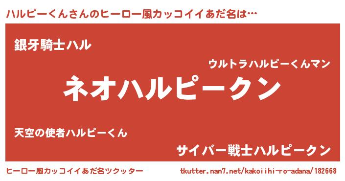 | 意味不明あだ名 | 『永久保存ハルピーくん』 |