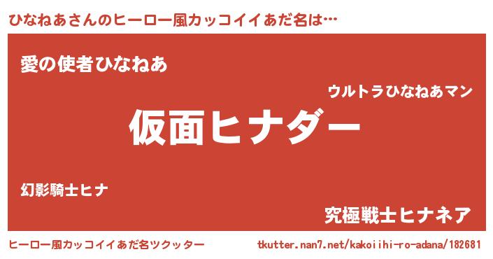 | ヘコむあだ名 | 『つくし』『ひなを』『ひなっふぃ~』 |