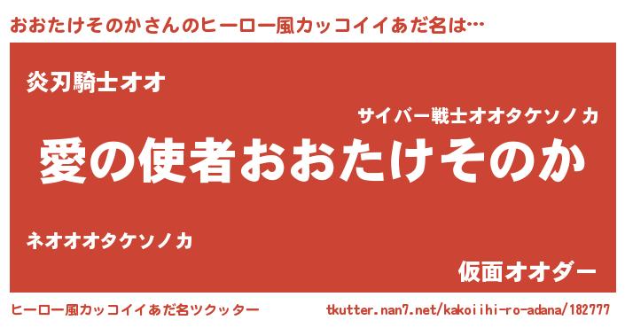 | 男性向けラノベタイトル風あだ名 | 『ノーゲーム・ノーオオタケソノカ』 |