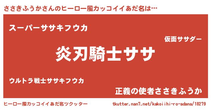 | 男性向けラノベタイトル風あだ名 | 『ささきふうかの嫁は女の子じゃないと思った?』 |