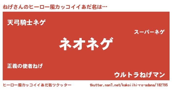| 男性向けラノベタイトル風あだ名 | 『ねげという概念が存在しない退屈な世界 』 |