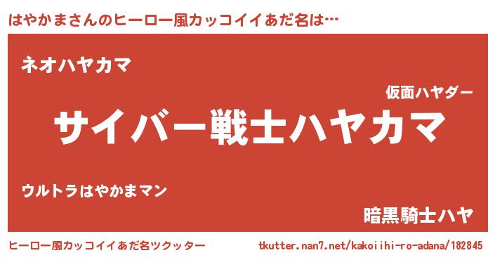 | 伝説のあだ名 | 『古より伝わる勇者はやかま』 |