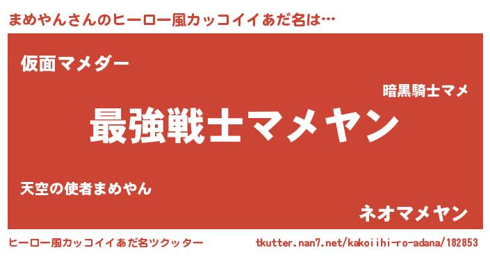 | 男性向けラノベタイトル風あだ名 | 『Re:まめやんから始める異世界生活』 |