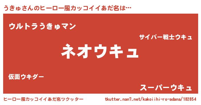 | 男性向けラノベタイトル風あだ名 | 『うきゅという概念が存在しない退屈な世界 』 |