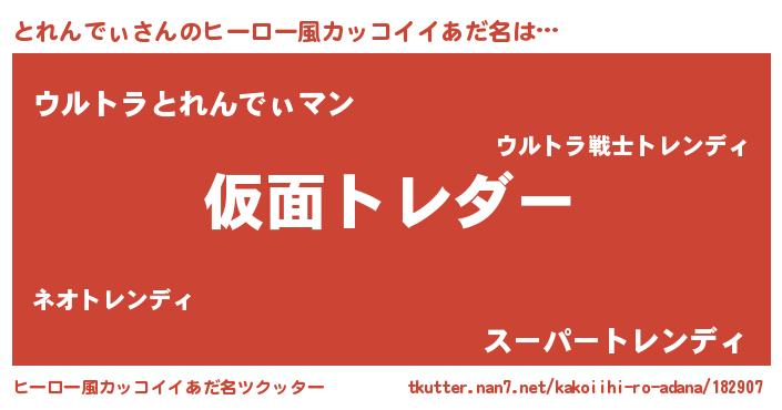 | 意味不明あだ名 | 『住所不定無職とれんでぃ(41歳)』 |