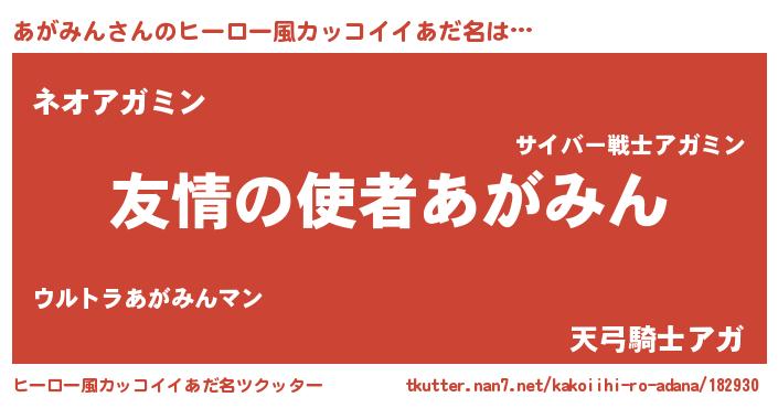 | 男性向けラノベタイトル風あだ名 | 『おまえをオタクにしてやるから、俺をあがみんにしてくれ! 』 |