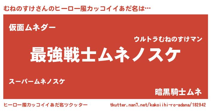 | 男性向けラノベタイトル風あだ名 | 『Re:むねのすけから始める異世界生活』 |
