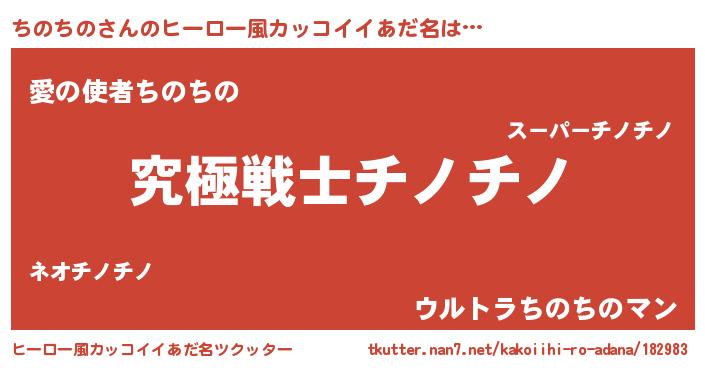 | 男性向けラノベタイトル風あだ名 | 『Re:ちのちのから始める異世界生活』 |