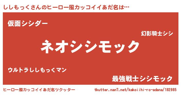 | 意味不明あだ名 | 『永久保存ししもっく』『自称ししもっく』 |