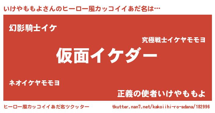 | 男性向けラノベタイトル風あだ名 | 『イケヤモモヨスレイヤー』 |