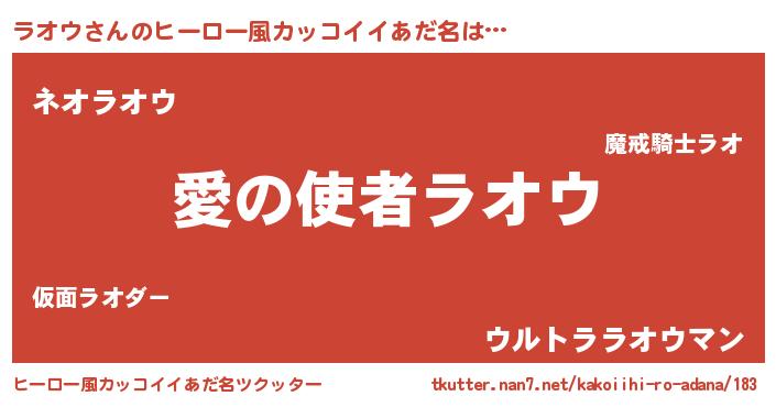 | 男性向けラノベタイトル風あだ名 | 『ノーゲーム・ノーラオウ』 |