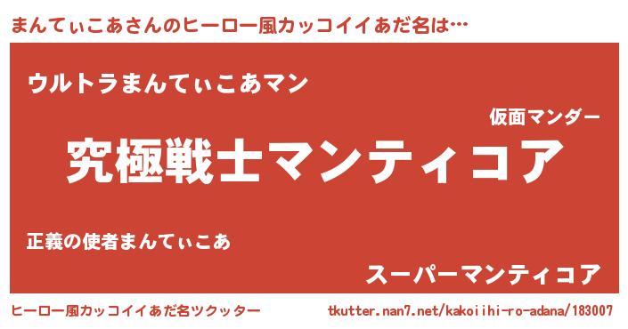 | 意味不明あだ名 | 『自称まんてぃこあ』 |