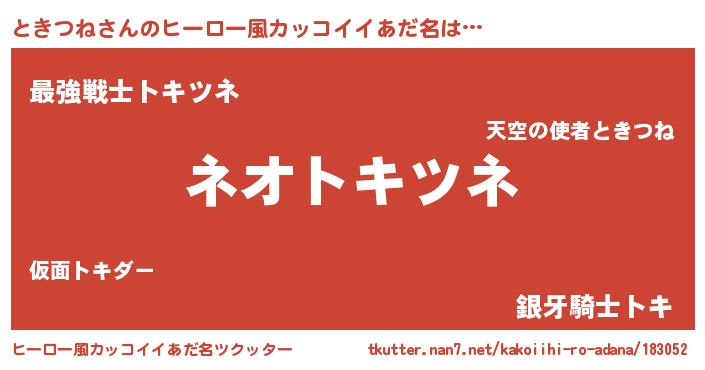 | 胡散臭い通販商品みたいなあだ名 | 『絶対に幸福をもたらす水素水…その名も「ときつね」』 |