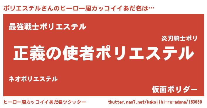 | 男性向けラノベタイトル風あだ名 | 『はたらくポリエステルさま!』 |