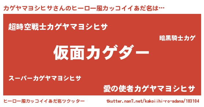 | 男性向けラノベタイトル風あだ名 | 『この素晴らしい世界にカゲヤマヨシヒサを!』 |