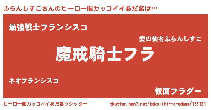 | 男性向けラノベタイトル風あだ名 | 『ダンジョンにふらんしすこを求めるのは間違っているだろうか』 |