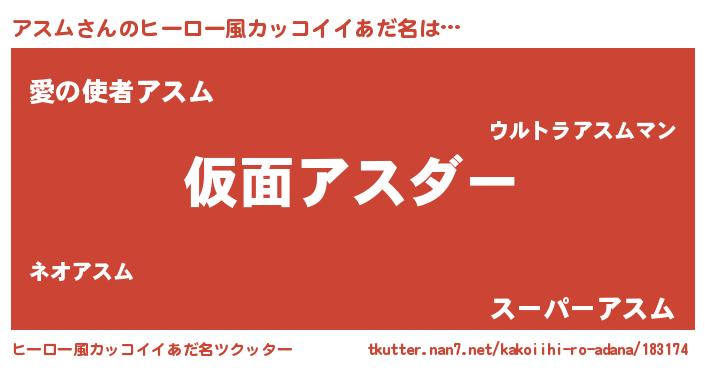 | 意味不明あだ名 | 『住所不定無職アスム(74歳)』 |