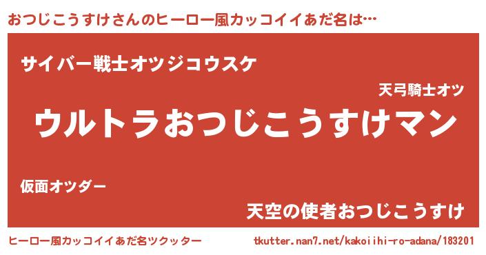 | 男性向けラノベタイトル風あだ名 | 『うちの娘の為ならば、俺はもしかしたらおつじこうすけも倒せるかもしれない。』 |