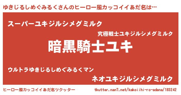 | 欧米人風あだ名 | 『ウサインゆきじるしめぐみるく』 |