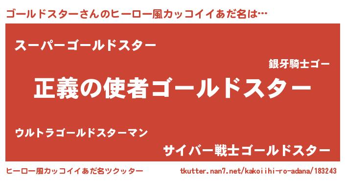 | 男性向けラノベタイトル風あだ名 | 『ゴールドスタースレイヤー』 |