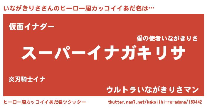 | 男性向けラノベタイトル風あだ名 | 『いながきりさ~年齢イコール彼女いない歴の魔法使い~』 |
