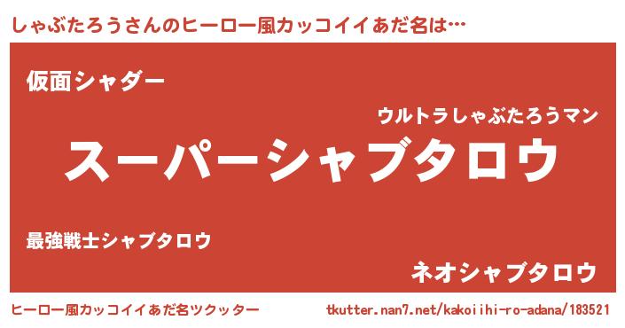| 男性向けラノベタイトル風あだ名 | 『しゃぶたろうの憂鬱』 |