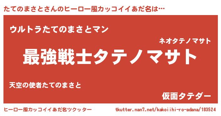 | 男性向けラノベタイトル風あだ名 | 『Re:たてのまさとから始める異世界生活』 |