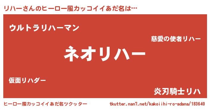 | ファンタジー風あだ名 | 『リハディッシュ』『エターナルリハーー』 |
